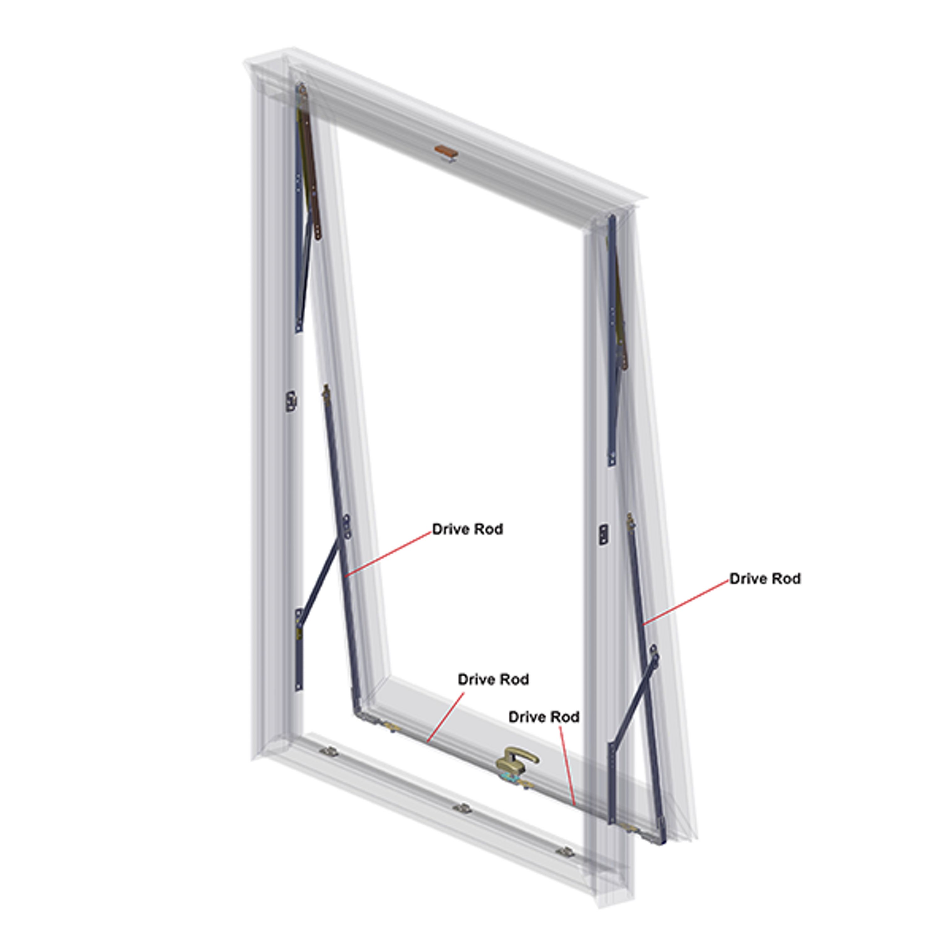 Standard and impact drive rods for vent mounted Euro groove applications.Concealed Door Stops