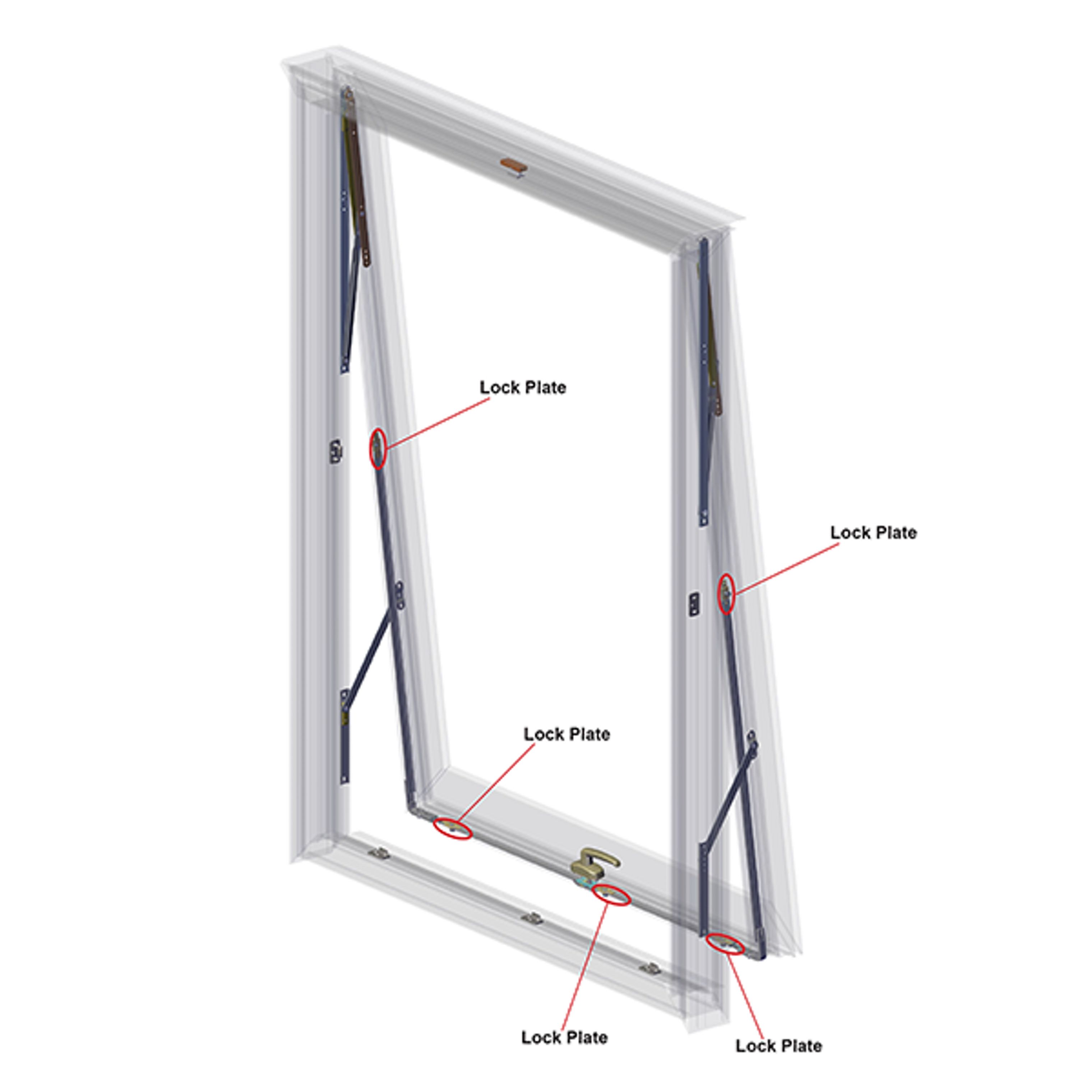 The fully concealed handle options. A “No External Handle” Maintenance Option for use with the 8301 Lock Bar Assemblies.Lock Plates